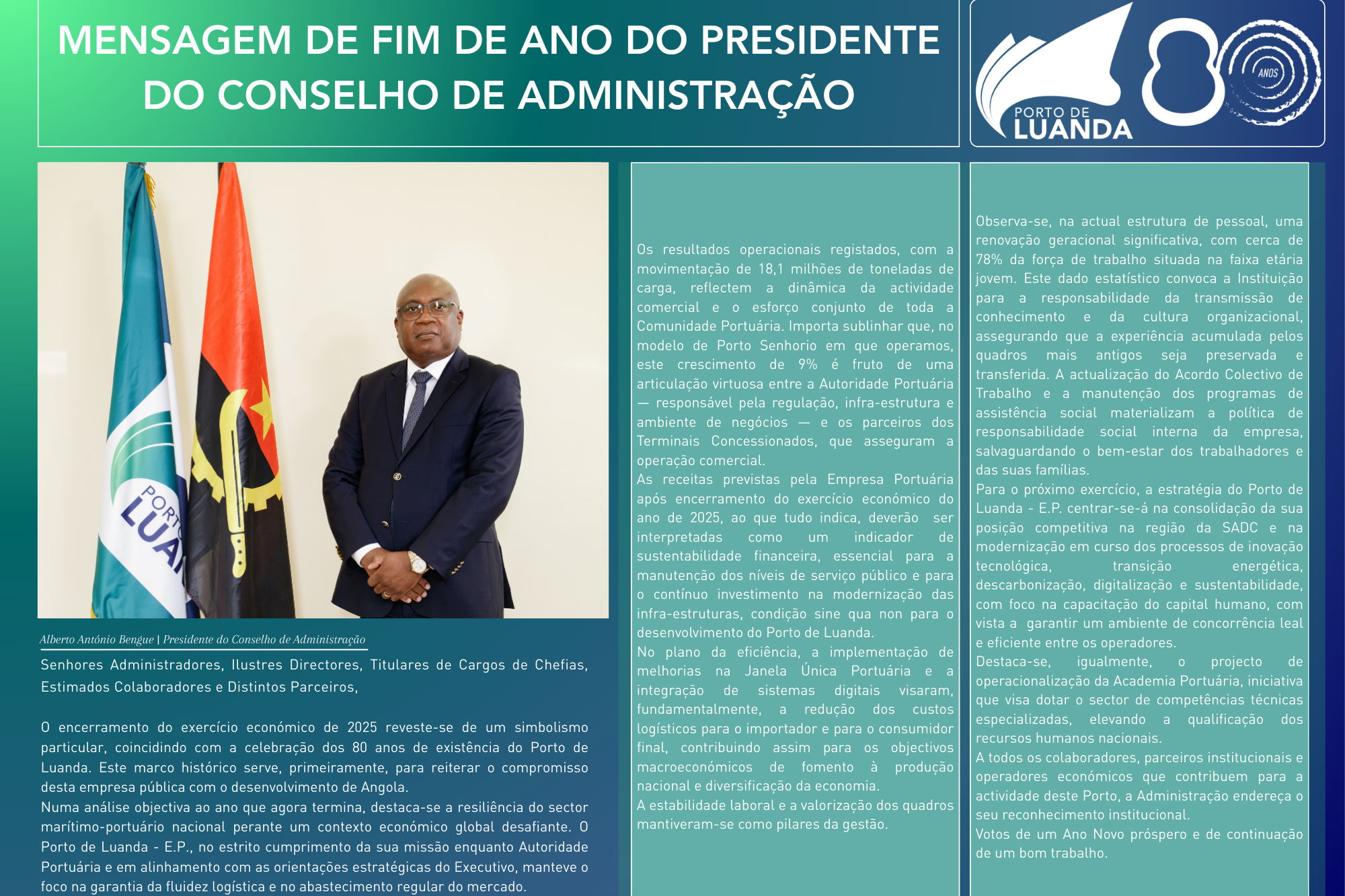 O usuário se compromete a fazer uso adequado dos conteúdos e da informação que o Porto de Luanda oferece no site e com caráter enunciativo, mas não limitativo: